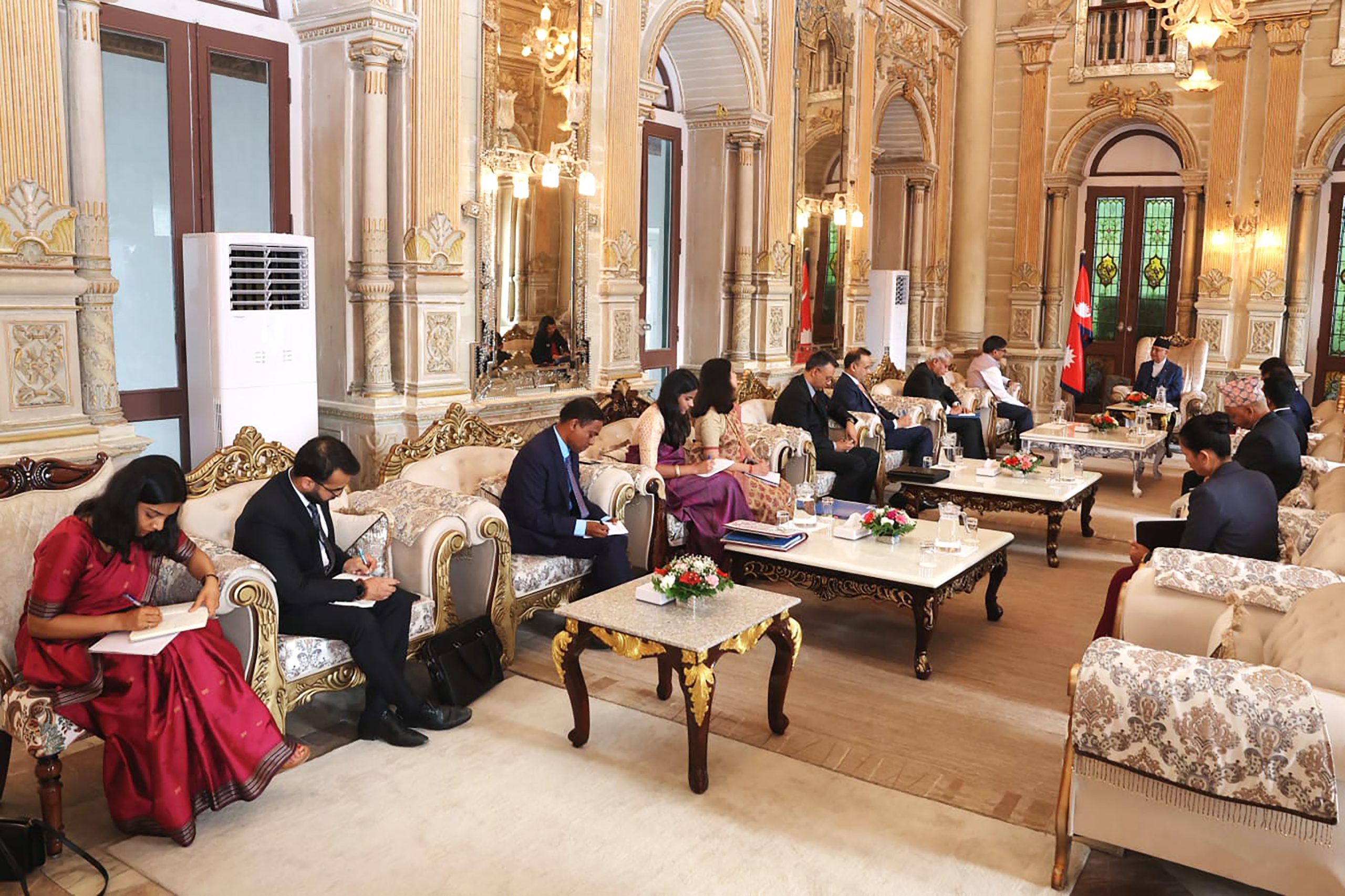 प्रधानमन्त्री केपी शर्मा ओलीसँग आइतबार सिंहदरबारस्थित प्रधानमन्त्री तथा मन्त्रिपरिषद्को कार्यालयमा नेपाल भ्रमणमा रहनुभएका भारतका विदेश सचिव विक्रम मिस्रीले शिष्टाचार भेट गर्दै ।