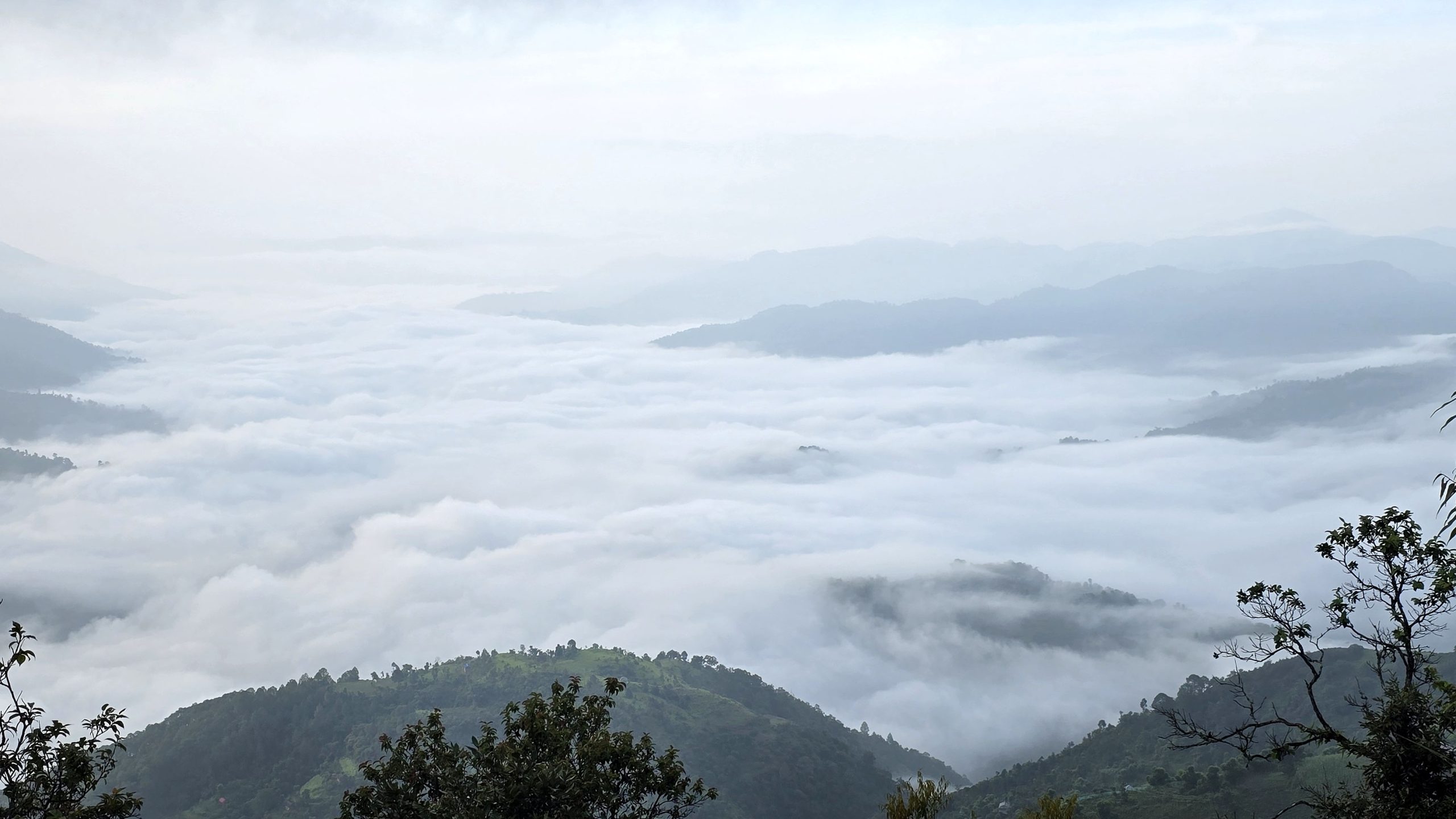 रोल्पाको रुन्टिगढी गाउँपालिका- ५ स्थित धौलाबाङबाट मङ्लबार बिहान देखिएको बादलले ढाकेको दाङको बस्ती । तस्बिर : कुलदीप न्यौपाने / रासस