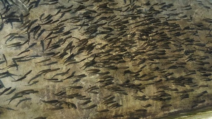 गोदावरी (कैलाली), ४ भदौः कैलाली र डोटीको सीमा भएर बग्ने ठूलीगाड जलाधार क्षेत्रमा विभिन्न प्रकारका माछाका प्रजाति पाइन थालेका छन् । बर्सात्का बेला ठूलीगाड जलाधार क्षेत्रमा पानीको सतह बढेसँगै विभिन्न प्रकारका माछाका प्रजाति पाइन थालेका हुन् । कैलाली र डोटीको सीमा भएर बग्ने ठूलीगाड कर्णाली नदीमा गएर मिसिन्छ । कर्णाली नदीमा जलस्तर बढेपछि ठूलीगाड जलाधार क्षेत्रमा लोपोन्मुख प्रजातिका माछासँगै अन्य प्रजातिका माछा पाइन थालेको स्थानीय भक्तप्रसाद भण्डारीले बताउनुभयो । उहाँका अनुसार ठूलीगाड क्षेत्रमा अहिले जाल खेलाउँदा आधा घण्टाभित्रै चार पाँच किलो माछा मार्न सकिन्छ । जालमा अहिले एक घण्टामा दुई किलोदेखि २० किलोसम्मका माछा पर्ने गरेको उहाँको भनाइ छ । उहाँले भन्नुभयो, “हिउँदमा दिनभरि जाल खेलाउँदा पनि एक किलोग्रामसम्म पनि हुँदैन ।” पछिल्लो पटक लामो समयदेखि खडेरीका कारण नदीमा पानीको सतह कम हुन थालेपछि ठूलीगाड जलाधार क्षेत्रमा माछाका प्रजाति घट्दै जान थालेकामा वर्षात्को समयमा भने पानीको सतह बढेसँगै विभिन्न प्रजातिका माछा पाइने गरेको चुरे गाउँपालिका–३ का स्थानीय टेकबहादुर शाहले बताउनुभयो । उक्त जलाधार क्षेत्रमा वर्षायाममा माछाका २७ प्रजाति र १६ जल वनस्पति रहेकामा तीमध्ये शेर, जेब्रा, बुचे असला, सोल, चुच्चे र राजावाम रैथाने प्रजातिका माछा पाइने गरेको शाहको भनाइ छ । उहाँले ठूलीगाड जलाधार क्षेत्रमा असारदेखि कात्तिकसम्म माछा पाइने गरेको बताउनुभयो । नदीमा पानीको सतह घट्दै जान थालेपछि भने माछाका प्रजाति पनि घट्दै जाने गरेको स्थानीयको भनाइ छ । चुरे क्षेत्रमा जथाभावी रुपमा खनिएका सडकबाट ढुङ्गा, माटो, गेग्रान बगेर ठूलीगाड जलाधार क्षेत्रमा थुपारिएर नदीको गहिराइमा कमी हुँदा हिउँदमा माछाका प्रजाति घट्दै गएको चुरे–१ का स्थानीय हुकुमबहादुर बोहराले बताउनुभयो । वर्षात्का बेला पानीको सतह बढेपछि मात्र सो क्षेत्रमा माछा पाइने गरेको उहाँले बताउनुभयो । ठूलीगाड जलाधार क्षेत्र तथा अन्य सहायक खोलामा बम विष्फोटनका साथै विषादी र करेन्ट प्रयोगगरी माछा मार्ने गरेकाले रैथाने माछाका प्रजाति लोप हुन थालेको उहाँको भनाइ छ । जलीय जैविक विविधता संरक्षण गर्न पाँच वर्षअघि कैलालीका दुई र डोटीका दुई स्थानीय तहले ठूलीगाड जलाधार क्षेत्रमा जथाभावी रूपमा माछा मार्न प्रतिबन्ध लगाएका थिए । कैलालीको चुरे र मोहन्याल तथा डोटीको जोरायल र बडीकेदार गाउँपालिकाले जलचर संरक्षण ऐन कार्यान्वयनमा ल्याएर हिउँदमा माछा मार्न प्रतिबन्ध लगाएको चुरेका अध्यक्ष चक्रबहादुर बोगटीले बताउनुभयो । ठूलीगाड जलाधार क्षेत्रमा जलचर संरक्षण ऐन कार्यान्वयनमा ल्याउन सके जलीय जैविक विविधता स