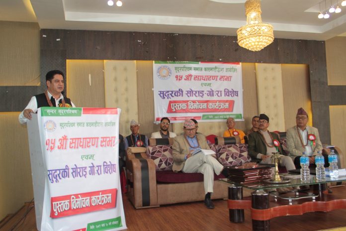 सुदूरपश्चिम समाज काठमाण्डौँले आफ्नो १५ औँ साधारणसभाका अवसरमा आयोजना गरेको उक्त कार्यक्रममा ‘सुदूरकि सोराई गौरा बिशेष’ पुस्तकको विमोचन गरिएको छ । उक्त पुस्तकमा सुदूरपश्चिमका विभिन्न जिल्ला तथा ठाउँ बिशेष गौरापर्वका बिषयमा व्याख्या गरिएको पुस्तकका प्रधान सम्पादक डाः हरिदत्त पाण्डेयले बताउनुभयो ।