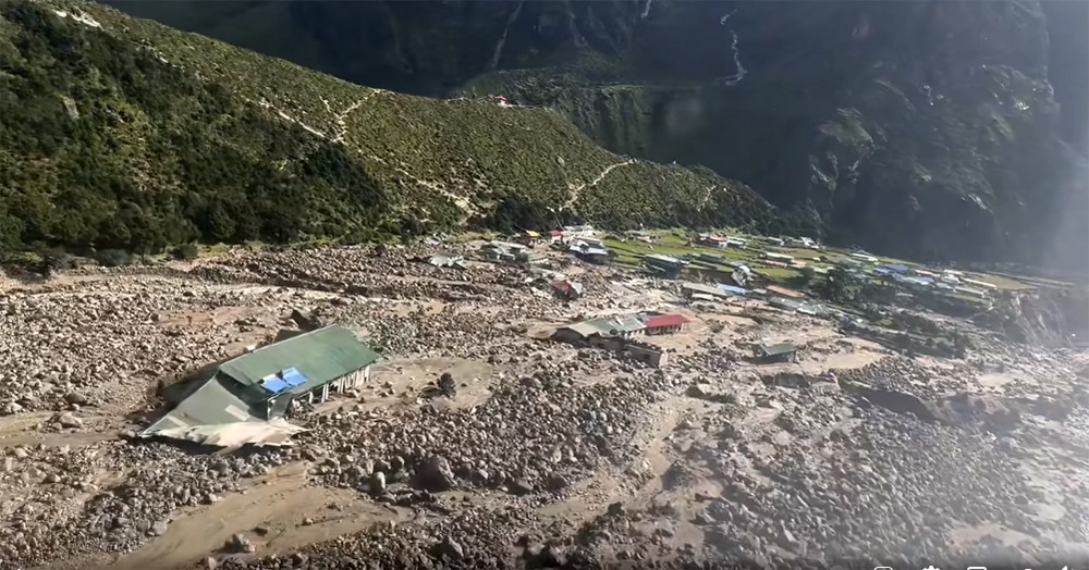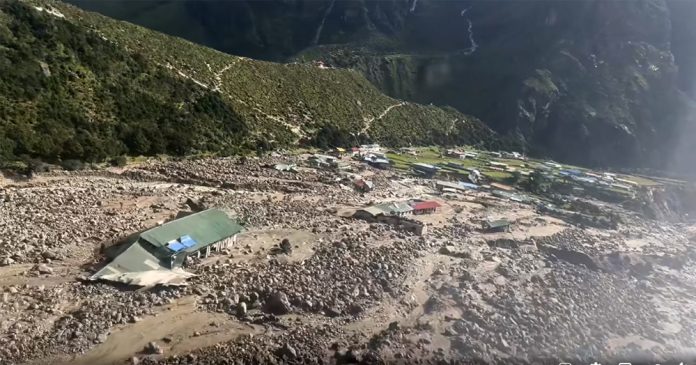 सोलुखुम्बु, १२ भदौः गत साउन ३२ गते शुक्रबार बिहानदेखि खुम्बु क्षेत्रमा पानी परिरहेको थियो । हिमाली भेग तुवाँलाले ढाक्नाका साथै बर्सात भइरहेको बेला हुस्सु पनि लागेको हुन्छ । तीन हजार आठ सय मिटर उचाइमा पर्ने थामेमा करिब ६५ परिवारको बसोबास गर्दै आएका छन् । थामे क्षेत्र सुन्दर र मनोरम उपत्यकाका र पर्यटकीय स्थलका रुपमा परिचित छ । गत साउन ३२ गते गाउँको माथिबाट ठूलो आवाज गर्दै लेदोसहितको बाढीपहिरो आयो । उच्च समस्थली भूभाग, थामेमा कृषि उत्पादन हुने गह्रामा बाढीपहिरोसँगै आएका ठूलाठूला ढुङ्गाहरु बसेका खुम्बु पासाङल्हामु गाउँपालिकाका प्रवक्ता लाक्पाछिरि शेर्पाले बताउनुभयो । “संयोग भन्नुपर्छ दिउँसोको समयमा घटना भयो । अफसिजन भएकाले पनि पर्यटक थिएनन् । त्यसैले मानवीय क्षति हुन पाएन । नाम्चेमा शुक्रबार हाट लाग्ने भएकाले दिउँसोको समयमा बाढी गएकाले स्थानीय नाम्चेबजार झरेका, कति गोठाला गएका थिए । बाढीपहिरोको कटानका कारण थामे बगरमा परिणत भएको छ । मन थाम्न सकिने अवस्था छैन”, उहाँले भन्नुभयो । थामेमा हिमताल फुटेर बाढी आउनुमा तापक्रम वृद्धि मुख्य कारण रहेको राष्ट्रिय विपद् जोखिम न्यूनीकरण तथा व्यवस्थापन प्राधिकरणले जनाएको छ । प्राधिकरणले यही भदौ ५ गते काठमाडौँस्थित सिंहदरबारमा पत्रकार सम्मेलन गरी तापक्रम वृद्धिका कारण दुईवटा हिमताल फुट्न गई बाढी बस्तीमा पसेको पुष्टि गरेको थियो । प्राधिकरणका कार्यकारी प्रमुख अनिल पोखरेलले माथिल्लो हिमतालमा रहेको हिउँ तापक्रम वृद्धिका कारण पग्लिएको र अविरल वर्षाका कारण जलसतह बढ्न गई पानीको छाल तल्लो हिमतालमा बजारिएको बताउनुभयो । त्यहाँको पोखरीको कमजोर मुख फुट्न जाँदा थामेमा बाढी पसेको प्राविधरणको प्रारम्भिक अनुसन्धानले देखाएको उहाँले जानकारी दिनुभयो । हिउँ पग्लेकाले पानी र त्यसको केही छाल तल्लो तालमा गएर बजारिएर ठूलो रुप लिएको प्रमुख पोखरेलले उल्लेख गर्नुभयो । उहाँका अनुसार यस बाढीबाट बीसभन्दा बढी घरहरूमा क्षति पुगेको छ । थामे आधारभूत विद्यालय, स्वास्थ्य चौकी र छात्रावास पूर्ण रुपमा क्षतिग्रस्त बनेका छन् भने बाँकी घरहरुमा आंशिक क्षति पुगेको प्रमुख जिल्ला अधिकारी देवी पाण्डे खत्रीले जानकारी दिनुभयो । उहाँका अनुसार खुम्बु पासाङल्हामु गाउँपालिका–५ मा रहेको नौ सय ५० किलोवाट क्षमताको जलविद्युत् आयोजनामा सोही बाढले क्षति पु¥याउँदा करिब नौ सय घर अन्धकारमा बस्न बाध्य छन् । बाढी आएको भोलिपल्ट सङ्घीय सरकारका रक्षामन्त्रीसहितको टोली थामे गाउँमा पुगी प्रतिघर रु १५ हजारका दरले वितरण भएको रकमखुम्बु पासाङ ल्हामु गाउँपालिकालाई हस्तान्तरण गरिएको प्रजिअ खत्रीले बताउनुभयो । “खुम्बु र दोलखाको रोल्वालिङ उपत