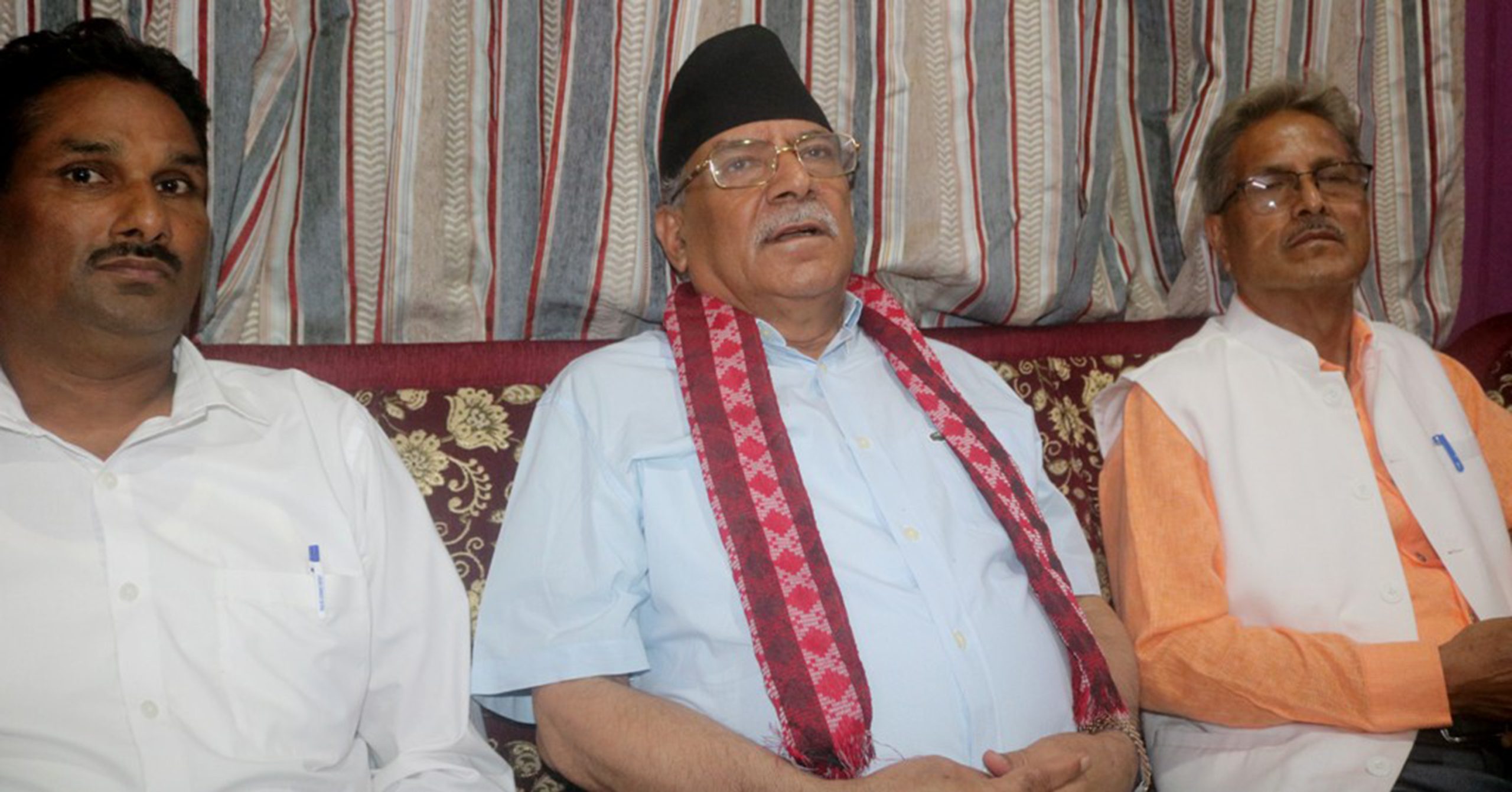 नेपाल कम्युनिष्ट पार्टी (माओवादी) केन्द्रका अध्यक्ष एवं पूर्वप्रधानमन्त्री पुष्पकमल दाहाल ‘प्रचण्ड’ आइतबार विराटनगर आउँदा विमानस्थलमा सञ्चारकर्मीहरुसँग मुलुकका समसामयिक विषयमा कुराकानी गर्दै ।