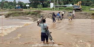 घोराही-तुलसीपुर सडकखण्ड अन्तर्गत दाङको घोराही उपमहानगरपालिका-१६ स्थित सर्रामा पूल नहुँदा जोखिम मोलेर सेवारखोला तर्दै सर्वसाधारण ।