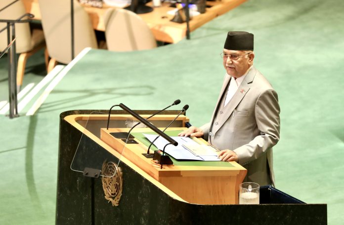 न्युयोर्क (अमेरिका) ११ असोजः प्रधानमन्त्री केपी शर्मा ओलीले संयुक्त राष्ट्रसङ्घको ७९औँ महासभालाई सम्बोधन गर्दै राष्ट्रसङ्घीय शान्ति अभियानमा सेना र प्रहरीको सबैभन्दा ठूलो योगदानकर्ताका रूपमा नेपाल विश्व शान्ति र सुरक्षामा आफ्नो योगदानलाई थप वृद्धि गर्न तयार रहेको बताउनुभएको छ । महासभामा भाग लिन नेपाली प्रतिनिधिमण्डलको नेतृत्व गर्दै अमेरिकाको न्युयोर्कमा रहनुभएका प्रधानमन्त्री ओलीले स्थानीय समय अनुसार बिहीबार साँझ ५ः३० बजे महासभामा सम्बोधन गर्नुभएको हो । उहाँले कसैलाई पनि पछाडि नपारी वर्तमान र भावी पुस्ताका लागि शान्ति, दिगो विकास र मानव मर्यादाको उन्नतिका लागि एकजुट हुन विश्व समुदायलाई आह्वान गर्नुभयो । सशस्त्र द्वन्द्वपछि नेपालको शान्ति स्थापनाका प्रयासका आरोह अवरोहको व्याख्या गर्दै प्रधानमन्त्री ओलीले आफ्नो नेतृत्वको सरकारले सङ्क्रमणकालीन न्यायसम्बन्धी कानुनलाई संसदबाट हालै पारित गराएको महासभालाई अवगत गराउनुभयो । “दुई ठूला राजनीतिक दलको सहकार्यमा बनेको वर्तमान सरकार नेपाली जनताको समावेशी र समतामूलक समृद्धिका लागि आर्थिक रुपान्तरणलाई अघि बढाउँदै स्थायित्व कायम गर्न कटिबद्ध छ”, प्रधानमन्त्री ओलीले भन्नुभयो, “सबैसँग मित्रता, छैन कसैसँग शत्रुता’ भन्ने गहिरो विश्वासका साथ हामीले हाम्रो विदेश नीति सञ्चालन गरिरहेका छौँ । पारस्परिक सम्मान, सार्वभौम समानता, क्षेत्रीय अखण्डता, एकार्काको आन्तरिक मामिलामा अहस्तक्षेप र शान्तिपूर्ण सहअस्तित्वका सिद्धान्तमा रहेर नजिकका छिमेकी र अन्य मुलुकसँगको घनिष्ठ, सौहार्दपूर्ण र रचनात्मक सम्बन्धलाई थप सुदृढ गर्न नेपाल प्रतिबद्ध छ ।” इजरायल–प्यालेस्टाइन द्वन्द्वमा दुई मुलुकबीचको शान्तिपूर्ण संवादबाट समाधान हुनुपर्नेमा प्रधानमन्त्री ओलीले जोड दिनुभयो । प्रधानमन्त्री ओलीले नेपाल सन् २०२६ भित्रमा अल्पविकसित मुलुकबाट स्तरोन्नति हुने तर सन् २०३० भित्रमा दिगो विकास लक्ष्य हासिल गर्न २४ बिलियन अमेरिकी डलरको आर्थिक खाडल रहेको बताउनुभयो । उहाँले विश्वका विकसित मुलुकको कार्बन उत्सर्जनबाट नेपाल प्रभावित हुनु परेको र जलवायु न्यायको लाभ नेपालले पाउनुपर्ने माग गर्नुभयो । महासभामा प्रथम महिला राधिका शाक्य, परराष्ट्रमन्त्री डा आरजु राणा देउवा, प्रधानमन्त्रीका मुख्य सल्लाहकार विष्णुप्रसाद रिमाल, परराष्ट्र मन्त्रालयका सचिव सेवा लम्साल, सहसचिव अमृतबहादुर राई, शिष्टाचार महापाल विष्णुप्रसाद गौतम, राष्ट्रसङ्घका लागि नेपालको स्थायी नियोगका प्रतिनिधि लोकबहादुर थापालगायत सहभागी हुनुहुन्छ । —