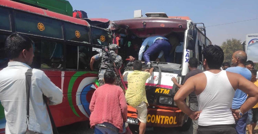 मलेखु (धादिङ), २१ कात्तिक : पृथ्वीराजमार्गअन्तर्गत धादिङको गजुरी गाउँपालिका–६ बन्छेटारमा दुईवटा बस एकापसमा ठोक्किँदा १३ जना घाइते भएका छन् । काठमाडौँबाट गोरखातर्फ जाँदै गरेको बा४ख ४४७६ नम्बरको बस तथा चितवनबाट काठमाडौँतर्फ आउँदै गरेको बा५ख ३४९५ नम्बरको बस एकापसमा ठोक्किएका हुन् । घाइतेलाई उपचारका लागि आदमघाट र गजुरीका स्वास्थ्य संस्थामा लगिएको जिल्ला प्रहरी कार्यालयका प्रवक्ता प्रल्हाद सिलवालले जानकारी दिनुभयो । दुर्घटनाग्रस्त बस सडकबाट पन्छाएर अवरुद्ध यातायात पुनः सञ्चालन गर्ने प्रयास भइरहेको उहाँले बताउनुभयो । तीब्र गतिमा गुडिरहेका दुवै बस अनियन्त्रित भई एकापसमा ठोक्किएका प्रहरीले जनाएको छ । –––