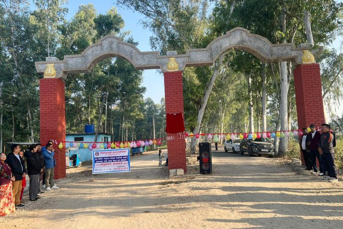 बनियानी (झापा), १८ मङ्सिरः जिल्लाको शिवसताक्षी नगरपालिका–१० स्थित पर्यटकीयस्थल दोमुखामा दुईमुखे प्रवेशद्वार निर्माण गरिएको छ । सोमबार एक कार्यक्रमकाबीच नगरप्रमुख मेगाहाङ थोप्रा, उपप्रमुख नरमाया कार्की, प्रमुख प्रशासकीय अधिकृत सुनिता तम्बाहाङ्फेले संयुक्त रूपमा प्रवेशद्वारको उद्घाटन गर्नुभयो । नवनिर्मित प्रवेशद्वारमाथि पशुपतिनाथ, स्वयम्भुलगायत विभिन्न जनजातिका पहिचान झल्काउने आकृति राखेर बहुसांस्कृतिक रूपमा विकास गरिने योजना रहेको नगरप्रमुख थोप्राले बताउनुभयो । पर्यटकीयस्थल दोमुखाको चौतर्फी विकासमा नगरपालिका योजनाबद्ध रूपमा लागेको उहाँको भनाइ छ । “चालु आर्थिक वर्षमा रु एक करोड लगानी गर्नेछौँ”, नगरप्रमुख थोप्राले भन्नुभयो, “सडकमा बत्ती, रात्रिकालीन पर्यटकलाई मनोरञ्जन दिने पूर्वाधार निर्माण गर्ने योजना छ ।” उहाँका अनुसार प्रवेशद्वारसँगै दोमुखाबाट वनभोजस्थल हुँदै स्वीमिङपुलसम्म जाने सात सय ३० मिटर सडकसमेत इन्टरलक ब्लक लगाउने काम सम्पन्न भएको छ । प्रवेशद्वार र सडक रु ८४ लाख ६१ हजार पाँच सय ५० मा भीमेश्वर कन्स्ट्रसन प्रालिले निर्माण गरेको हो । निर्माणाधीन उक्त सडक छ मिटर चौडा रहेका छ भने ६० एमएमको ब्लक लगाइएको छ । कार्यक्रममा नगर उपप्रमुख कार्कीले दोमुखा शिवसताक्षी नगरको गहना भएकाले यसको विकास र प्रवर्द्धनमा पालिका निरन्तर लागिरहेको बताउनुभयो । नगर क्षेत्रमा रहेका तीन वटा पर्यटकीयस्थल दोमुखा, सतासीधाम र चिल्लागढले यस क्षेत्रको पहिचान बनाएको भन्दै यसको संरक्षण र प्रवर्द्धन गर्दै लैजाने उहाँले उल्लेख गर्नुभयो । शिवसताक्षी–१० का वडाध्यक्ष हर्कबहादुर सिगुको अध्यक्षतामा भएको उद्घाटन कार्यक्रममा प्रमुख प्रशासकीय अधिकृत तुम्हाङ्फेले उपस्थित सबैलाई स्वागत गर्नुभएको थियो । कार्यक्रम सञ्चालन लेखा शाखा प्रमुख प्रकाश योङ्हाङले गर्नुभएको थियो । —