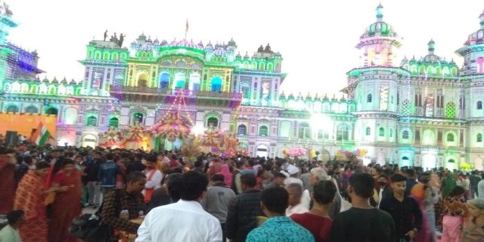 महेन्द्रनगर (धनुषा), २२ मङ्सिर : श्री सीताराम विवाहपञ्चमी महामहोत्सवका लागि जानकी मन्दिरकै प्राङ्गणमै विवाहमण्डप बनाइएको छ । जानकी मन्दिरको प्राङ्गणमा वैवाहिक कार्यक्रमको समयमा हजारौँ श्रद्धालुको सहभागिता रह्यो । जानकी मन्दिरका उत्तराधिकारी महन्त रामरोशन दास वैष्णवका अनुसार यस पटक विवाहपञ्चमी महामहोत्सवमा करिब २० लाखभन्दा बढी दर्शनार्थीहरू सहभागी भए । त्रेतायुगको झल्को दिने विवाहपञ्चमी महोत्सव हेर्नका लागि नेपाल, भारत र तेस्रो मुलुकबाट हजारौँ दर्शनार्थीहरू जनकपुरधाम आइपुगेको हो । यस पटक प्रत्येक ५ वर्षमा अयोध्याबाट आउने जन्ती पनि आएका छन् । अयोध्याबाट रामजन्म भूमि तीर्थ क्षेत्र ट्रष्टका महासचिव चम्पत राय, अयोध्याका प्रमुख गिरिशपति त्रिपाठी, विश्व हिन्दू परिषद् केन्द्रीय मन्त्री राजेन्द्र सिंह पङ्कज सहितका व्यक्ति जन्तीमा आएको छ । जकपुरधामस्थित जानकी मन्दिरको प्राङ्गणमा वैवाहिक कार्यक्रमको प्रत्येक वर्ष आयोजना हुनेगर्छ । वैवाहिक कार्यक्रमका लागि छोरीको बिहेका लागि जसरी मण्डप सजाइन्छ ठीक त्यसरी नै रामजानकी विवाहका लागिसमेत मण्डप सजाएको छ । जनकपुरधामस्थित रहेको जानकी मन्दिरलाई मिथिला दरबारका रूपमा लिइन्छ भने राम मन्दिरलाई अयोध्या दरबारका रूपमा लिइन्छ । जानकी मन्दिर तथा राम मन्दिरलाई बेहुली झैँ विवाहपञ्चमीका लागि सिङ्गारिएको छ । जानकी मन्दिरका महन्त रामतपेश्वर दास वैष्णवले छोरी बिहेको आयोजन गरिरहेको जस्तै अनुभव गर्ने गरेको बताउनुभयो । महन्त दासका अनुसार बिहेमा माता सीताको पिता राजा जनकको भूमिकामा हुन्छ । यता राम मन्दिरका महन्त बाबा राम गिरि पनि राजा दशरथको भूमिका निर्वाह गर्न कुनै कसर बाँकी राख्दैनन् । उहाँले भन्नुभयो, “सीताजस्तो बुहारी पाउने भएपछि हर्ष विभोर हुनु स्वाभाविक नै हो ।” त्रेतायुगमा अयोध्यानरेश दशरथका पुत्र मर्यादा पुरुषोत्तम भगवान् श्री राम र मिथिलाका शिरध्वज राजर्षि जनककी पुत्री माता जानकीको विवाह भएको स्मरणमा साताव्यापी रूपमा मनाइने विवाहपञ्चमीको पहिलो दिन नगर दर्शन विधि गरिन्छ । जसमा राम लक्ष्मणको प्रतीक स्वरूप बनाइएको राम लक्ष्मणलाई जनकपुरधाममा नगरदर्शन गराइन्छ । विवाहपञ्चमी महोत्सवको दोस्रो आकर्षण भनेको फूलबारी लिला हो । फूलबारी लीलामा राम जानकीको पहिलो भेट गराइन्छ । त्रेतायुगमा भगवान रामको पहिलो भेट भारतको गिरिजा स्थानमा रहेको गिरिजा माई मन्दिरको प्राङ्गणमा रहेको फूलबारीमा भएको जानकार डा राजेन्द्र विमल बताउँछन् । यो विधि जानकी मन्दिरकै छेउमै रहेको विवाहमण्डपको फूलबारीमा गर्ने गरिन्छ । तेस्रो दिन धनुष यज्ञ सम्पन्न हुन्छ । माता सीताले शिवजीको पिनाक धनुषलाई बायाँ हातले उठाए