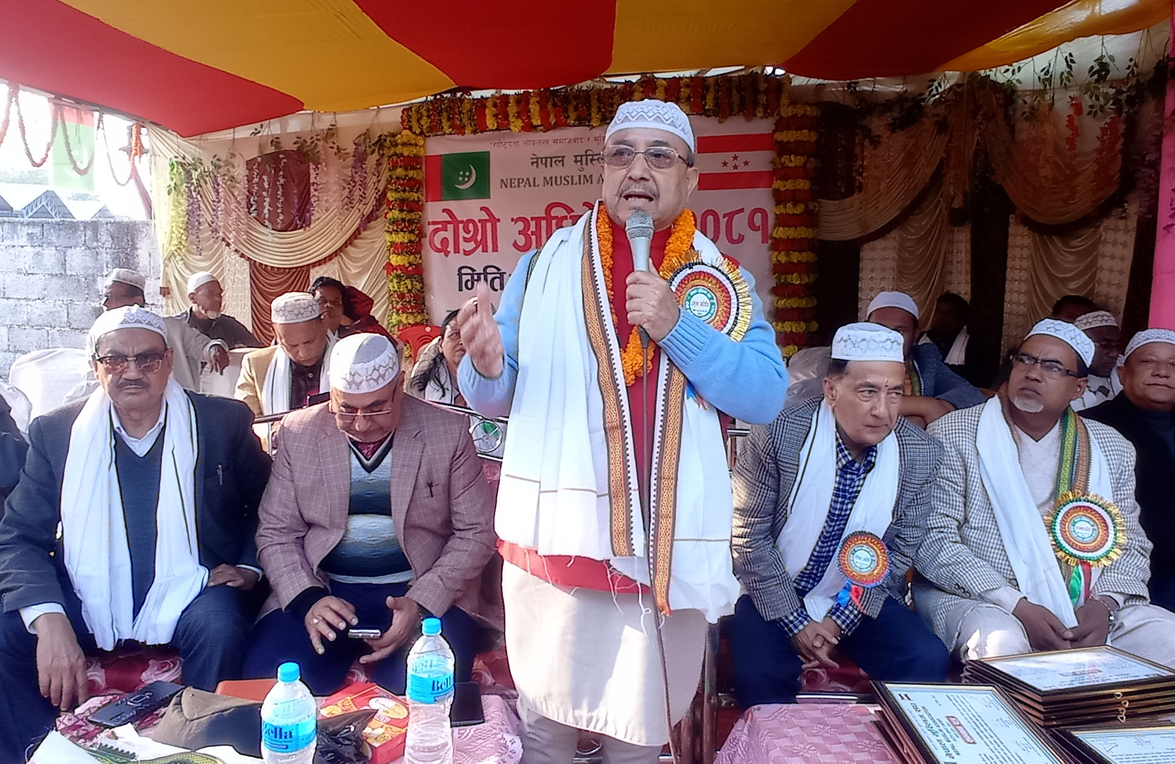 इनरुवा (सुनसरी), ३० मङ्सिरः नेपाली कांग्रेसका उपसभापति पूर्णबहादुर खड्काले पार्टीको सङ्गठन विस्तारमा मुस्लिम समुदायको योगदान सराहनीय रहेको बताउनुभएको छ । नेपाली कांग्रेसको भ्रातृ संस्था नेपाल मुस्लिम सङ्घको दोस्रो जिल्ला अधिवेशनको शनिबार यहाँ उद्घाटन गर्दै उहाँले नेपाली कांग्रसलाई स्थापनाकालदेखि यसको साङ्गठनिक सृदृढीकरणमा मुस्लिम समुदायले सघाएको बताउनुभयो । कार्यक्रम पूर्वमन्त्री ज्ञानेन्द्रबहादुर कार्कीले वर्तमान सरकार राजनीतिक स्थायित्वका लागि गठन भएको दोहोर्याउँदै समाजका सबै पक्षका समस्या सम्बोधन गर्न संविधान संशोधनको विषयलाई आफ्नो पार्टीले अघि बढाएको बताउनुभयो । कार्यक्रममा नेपाली कांग्रेसका केन्द्रीय सदस्य राजीव कोइराला, सुनसरी सभापति तथा इनरुवा नगरपालिकाका प्रमुख केदार भण्डारी, कोशी गाउँपालिकाका अध्यक्ष अयुव अन्सारी, हरिनगर गाउँपालिकाका अध्यक्ष गफार अन्सारी, भोक्राहा नरसिंह गाउँपालिकाका अध्यक्ष अजमलअख्तर आजादलगायत उपस्थित हुनुहुन्थ्यो । यसैबीच, सङ्घको कोशी प्रदेश सभापतिमा इस्राइल मन्सुरी सर्वसम्मत चयन हुनुभएको छभने उपसभापतिमा मोहम्मद महताब आलम, सचिवमा मोहम्मद बसिर मियाँ चुनिनुभएको छ । –––