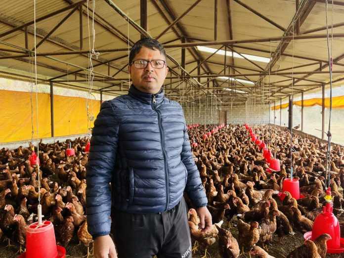 गलकोट (बागलुङ), ३० मङ्सिरः बागलुङ नगरपालिका–७ कालिमाटीको ग्रिन ल्याण्ड बहुउद्देश्यीय कृषि फार्ममा पाँच हजार कुखुरा पालेर यहाँका एक उद्यमीले मासिक रु एक लाख ५० हजार बचत गर्र्दै आउनुभएको छ । स्थानीय ओमराज शर्माले सञ्चालन गर्नुभएको कुखुरा फार्मबाट दैनिक पाँच हजार अण्डाको बजारीकरण भइरहेको छ । बाह्र बर्ष कतार बसेर फर्कनुभएका शर्माले कुखुरापालनमा आम्दानी र जोखिम बराबर रहेको बताउनुभयो । “तीन हजार कुखुरा पाल्दै आएको थिएँ, हाल थप दुई हजारले अण्डा दिन सुरु गरेका छन्, दैनिक पाँच हजार अण्डा बजार बेच्ने गरेको छु”, उद्यमी शर्माले भन्नुभयो । एक करोड ५० लाख लागतमा फार्म स्थापना गरी सञ्चालनमा ल्याएको बताउँदै उहाँले अण्डाको बजारीकरणका लागि बागलुङ बजारमा डिपो, एउटा पिकअप जिप र चार जनालाई प्रत्यक्ष रोजगारी दिनुभएको छ । फार्मको कमाइबाट आफू सन्तुष्ट रहेको बताउँदै अहिले कर्मचारीलाई तलब खर्च कटाए मासिक रु एक लाख ५० हजार बचत हुने गरेको उद्यमी शर्माले बताउनुभयो । अण्डा बिक्रीका लागि बजार अभाव नभएको बताउँदै बाहिरबाट आउने अण्डाका कारण मूल्य भने अस्थिर हुने गरेको उहाँले बताउनुभयो । किसानलाई स्थानीय सरकारले प्राविधिक सहयोग गर्नुपर्नेमा उहाँले जोड दिनुभयो । कुखुरापालनभन्दा गाईबाख्रा पाल्न सहज हुने उहाँको अनुभव छ । त्यसैले अब उहाँ व्यावसायिक रूपमा गाई र बाख्रापालनको योजना कार्यान्वयनमा हुनुहुन्छ । –––