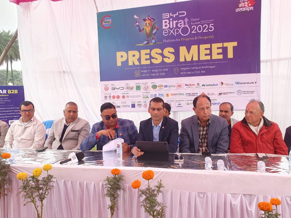 मोरङ, २३ पुसः जिल्लाको आर्थिक एवं औद्योगिक विकासका लागि उद्योग सङ्गठन मोरङले ‘विराट एक्स्पो–२०२५’ आयोजना गर्न लागेको छ । सङ्गठनले विराटनगर महानगरपालिका–१४ जतुवास्थित डिग्री क्याम्पसको मैदानमा आगामी माघ ११ गतेदेखि २० गतेसम्म एक्स्पो (व्यापार तथा औद्योगिक मेला) आयोजना गर्न लागेको सोमबार यहाँ आयोजित पत्रकार सम्मेलनमा जानकारी दिइएको हो । विराट एक्स्पोमा नौ वटा पेभिलियन (व्यापारी कक्ष) अन्तर्गत दुई सय ६८ स्टल रहने एक्स्पो व्यवस्थापन समितिका संयोजक भोलेश्वर दुलालले जानकारी दिनुभयो । उद्योग सङ्गठन मोरङका अध्यक्ष राकेश सुरानाले नेपाल, भारत, पाकिस्तान र बङ्गलादेशका स्टार्टअप भिजन, कोशी ह्याकाथुन, रोजगार, व्यावसायिक सेवा प्रदायक, सूचना, शिक्षा तथा डिजिटल प्रविधि, अटोमोबाइल्सका, औद्योगिक कर्पोरेट, कृषि, पर्यटन, खाद्यका स्टल रहने उल्लेख गर्नुभयो । । प्रमुख जिल्ला अधिकारी प्रेमप्रसाद भट्टराई, नेपाल उद्योग वाणिज्य महासङ्घ कोशी प्रदेशका अध्यक्ष राजेन्द्र राउत, मोरङ उद्योग व्यापार सङ्घका वरिष्ठ उपाध्यक्ष अनिल साह, नेपाल पत्रकार महासङ्घ कोशी प्रदेशका अध्यक्ष भरत खड्का, उद्योग सङ्गठन मोरङका वरिष्ठ उपाध्यक्ष नन्दकिशोर राठी र उपाध्यक्ष विपिन काबराले एक्स्पो आयोजनाले यस क्षेत्रमा आर्थिक कारोबारमा वृद्धि हुने विश्वास व्यक्त गर्नुभयो । विराट एक्स्पो–२०२५ को सम्पूर्ण आन्तरिक तयारी पूरा भइसकेको र स्टलका लागि मैदान निर्माण सुरु भएको संयोजक दुलालले जानकारी दिनुभयो । —
