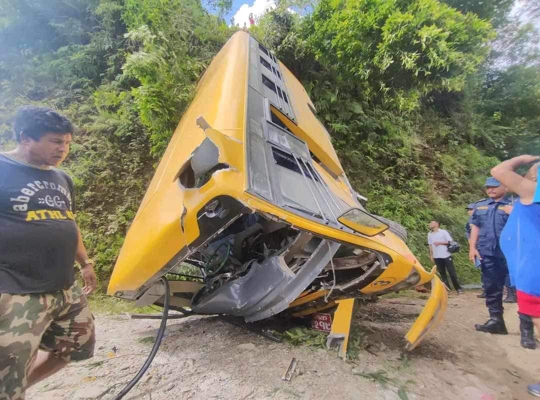 कास्की, १४ साउन : कास्कीको पोखरामा आज भएको विद्यालयको बस दुर्घटनामा दुई जनाको मृत्यु भएको छ । उक्त दुर्घटनामा २८ जना घाइते भएका छन् । पोखरा–१७ बिरौटास्थित एलपी देवकोटा मेमोरियल स्कुलको ग१क ६२१९ नम्बरको विद्यार्थी बोकेको बस पोखरा–२१ गुड्कुस्थित भित्री सडकमा अनियन्त्रित हुँदा सडकबाट ५० मिटर तल खसेको थियो । सो घटनामा पोखरा–२१ बस्ने उक्त विद्यालयकी कार्यालय सहयोगी ३३ वर्षीया आरती विक र विद्यालयमा अध्ययनरत उनका छोरा ६ वर्षीय प्रिन्स विकको मृत्यु भएको जिल्ला प्रहरी कार्यालयका प्रवक्ता एवं प्रहरी नायव उपरीक्षक वसन्तकुमार शर्माले जानकारी दिनुभयो । दुवैजनाको गण्डकी मेडिकल कलेजमा उपचारका क्रममा मृत्यु भएको हो । दुर्घटनामा घाइते भएका विद्यार्थी, शिक्षक, अभिभावक तथा चालकमध्ये १३ जनाको गण्डकी मेडिकल कलेजमा, १२ जनाको पोखरा स्वास्थ्य विज्ञान प्रतिष्ठान अन्तर्गतको पश्चिमाञ्चल क्षेत्रीय अस्पताल र तीन जनाको मणिपाल शिक्षण अस्पतालमा उपचार भइरहेको प्रहरीले जनाएको छ ।